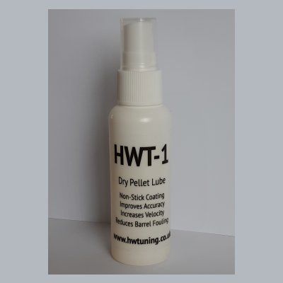 HWT-1 is a dry film lubricant to out-perform any other pellet lube. Friction is lowered and lead deposits from previously used pellets inside the barrel are reduced, leading to less fliers. In our experience, accuracy and consistency goes up by a good 15 – 20% when you use a dry lube. There is enough in this 50ml bottle to lube at least 25 tins of pellets. Spray application or use the dropper supplied.