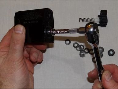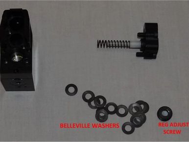 Remove the regulator adjuster/tension screw and the belleville washers.