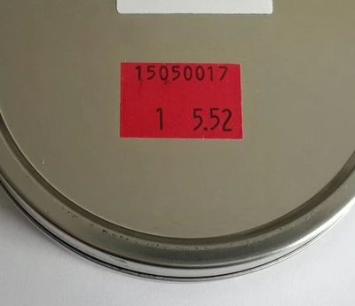 On the back of the tin of JSB pellets you will find a sticker with three sets of numbers (JSB Exact Jumbo Cal .22 pictured):